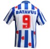 Il s'agit du maillot de football rétro officiel du SC Heerenveen 1993-94 d'ABM pour adultes. Le dos porte le maillot numéro 9. Ce maillot de football rétro de Heerenveen est basé sur le maillot domicile porté lors de la saison 1993/94. Le maillot de football du SC Heerenveen contient les traditionnelles rayures bleues et blanches avec le pompeblêden rouge sur le dessus. De plus, le maillot rétro Heerenveen a un col polo bleu et un col avec bouton-pression. Le nom du sponsor de l'époque, BATAVUS, se trouve au milieu de la poitrine. Sur la poitrine gauche, le logo du SC Heerenveen et celui de droite contient le logo du sponsor vestimentaire ABM. Matériau : 100 % polyester.