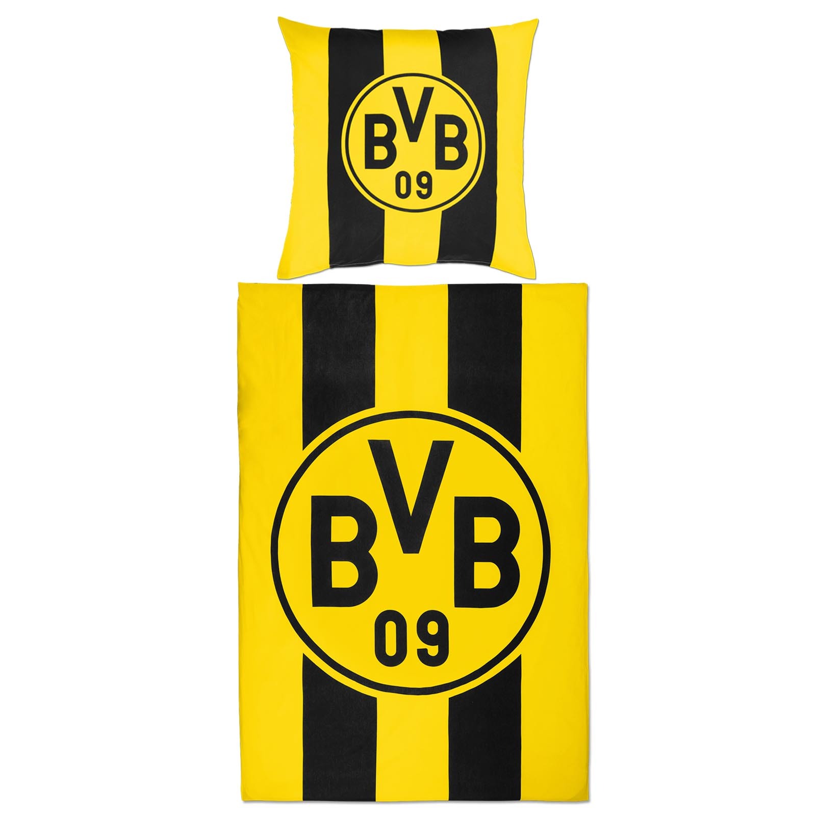 Voici une housse de couette et une taie d’oreiller officielles du Borussia Dortmund pour lit une personne. La couette et l’oreiller reprennent les couleurs du club et sont ornés du logo du Borussia Dortmund. La housse de couette est noire avec des rayures jaunes et arbore le blason du Borussia Dortmund. La taie d’oreiller mesure 80 x 80 cm et la housse de couette mesure 135 x 200 cm. Il s’agit d’un ensemble pour lit une personne. Parfait pour les véritables supporters du Borussia Dortmund ! Le set est livré dans un sac spécial du club allemand.