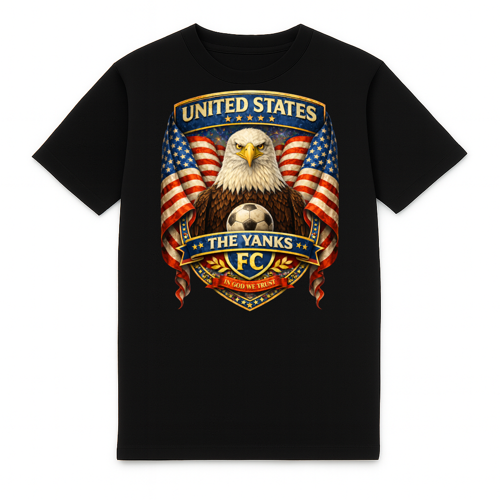Cool T-shirt de football des États-Unis de FC ELEVEN pour adultes. Le T-shirt épais est fabriqué en coton biologique lourd. Ce T-shirt se distingue par son imprimé graphique coloré des États-Unis dans le dos. L’imprimé comporte les textes The Yanks et United States, avec un pygargue à tête blanche américain au centre. Sur la poitrine gauche se trouvent les initiales FC en noir sous forme de logo en silicone. Le T-shirt épais est entièrement noir et doté d’un col rond. Le T-shirt est fabriqué en coton lourd et présente une coupe normale. Matière: 100% coton biologique.