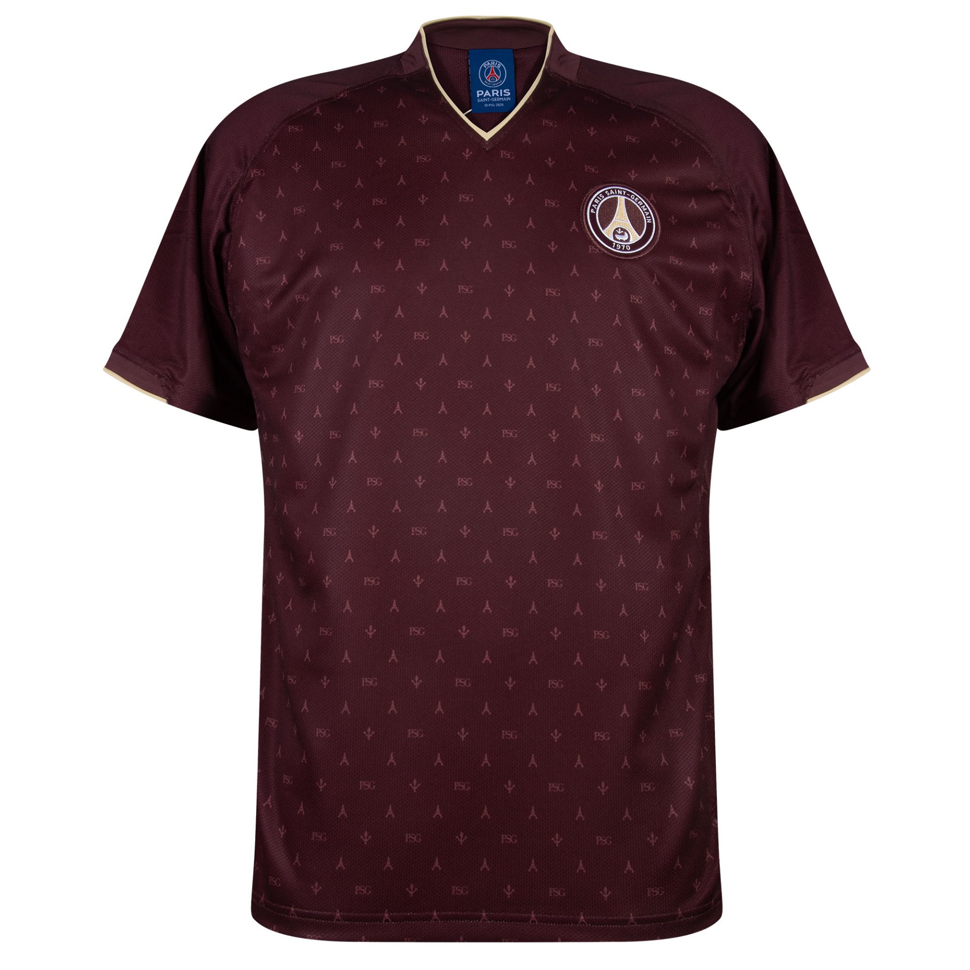 Le maillot extérieur rétro PSG 2006/07 est présenté dans une profonde teinte bordeaux et se distingue par son imprimé all-over unique avec les initiales PSG et la Tour Eiffel. Une référence subtile mais reconnaissable à l’identité du club et de la ville de Paris. L’écusson officiel du Paris Saint-Germain est apposé sur la poitrine gauche.