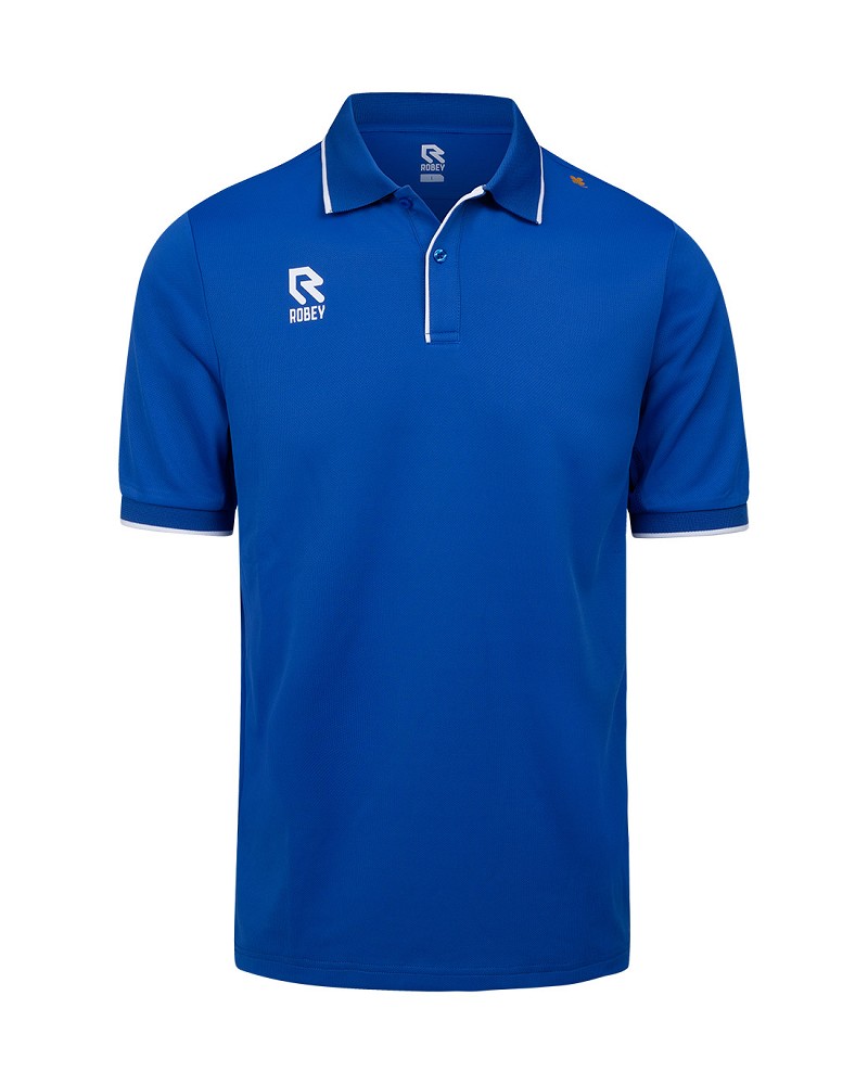 Polo sportif Allrounder de Robey en bleu pour homme. Le polo est un polo classique avec une fermeture à trois boutons et des liserés blancs au niveau du col, du cou et du passepoil. Le logo de Robey est placé sur la poitrine droite et un trèfle doré à quatre feuilles sur l'épaule gauche. Le polo Allrounder de Robey est fabriqué en matériau hadement BeyDry. Cela rend le polo parfait pour une tenue décontractée mais aussi assez technique pour le sport. Matériau : 100 % polyester.