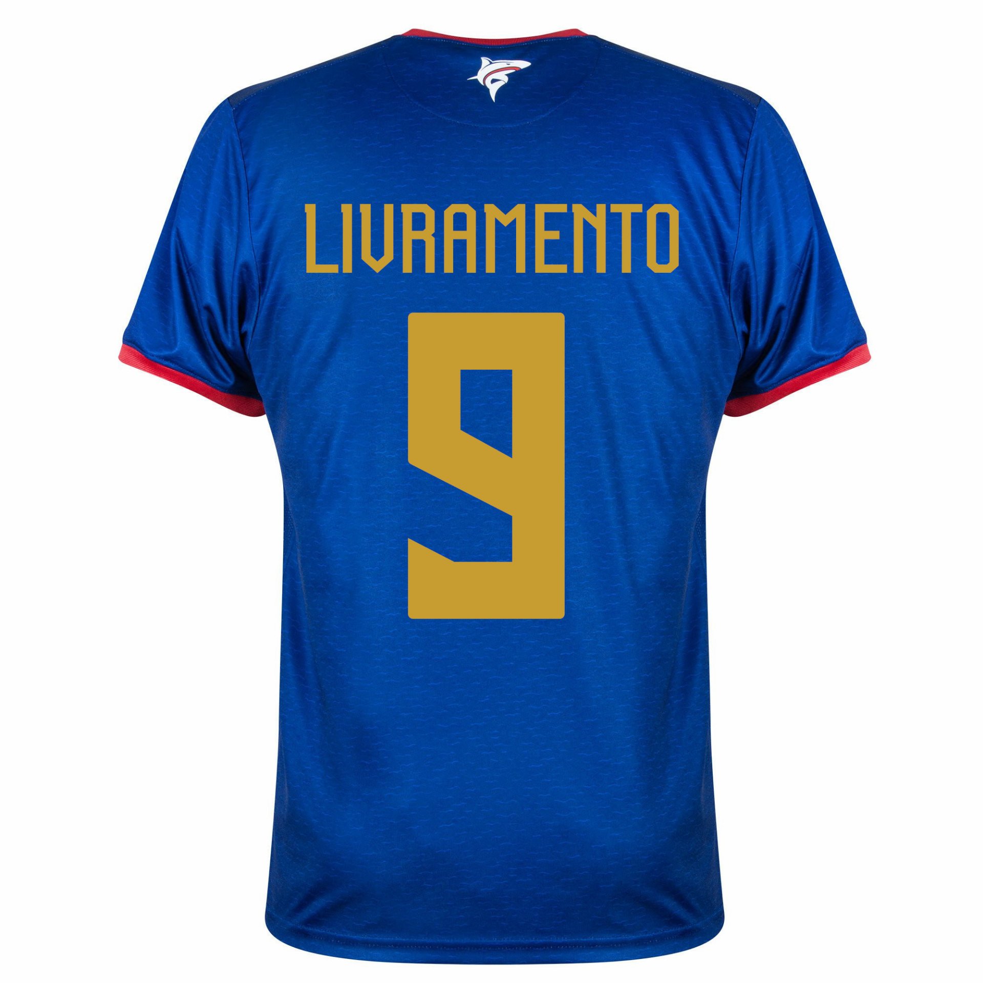 Voici le maillot domicile officiel du Cap-Vert 2024/25 pour adultes de la marque Tempo Sport. Ce maillot comporte le flocage officiel de Livramento 9. L’équipe nationale du Cap-Vert portera ce maillot lors des matchs internationaux pendant la période 2024-2025. Le design est entièrement inspiré des couleurs du drapeau national. Le maillot est bleu avec un imprimé intégral représentant les îles et la position du pays dans l’océan Atlantique Nord. Les coordonnées géographiques du pays sont également intégrées au design. Le col rond est rouge, tout comme la bande située en bas des manches. Le logo de l’équipementier Tempo est visible sur la poitrine droite, tandis que l’écusson de la fédération cap-verdienne figure sur la poitrine gauche. Dans la nuque à l’arrière, une illustration de requin fait référence au surnom de l’équipe nationale : Tubarões Azuis (Requins Bleus). Le maillot a une coupe standard.